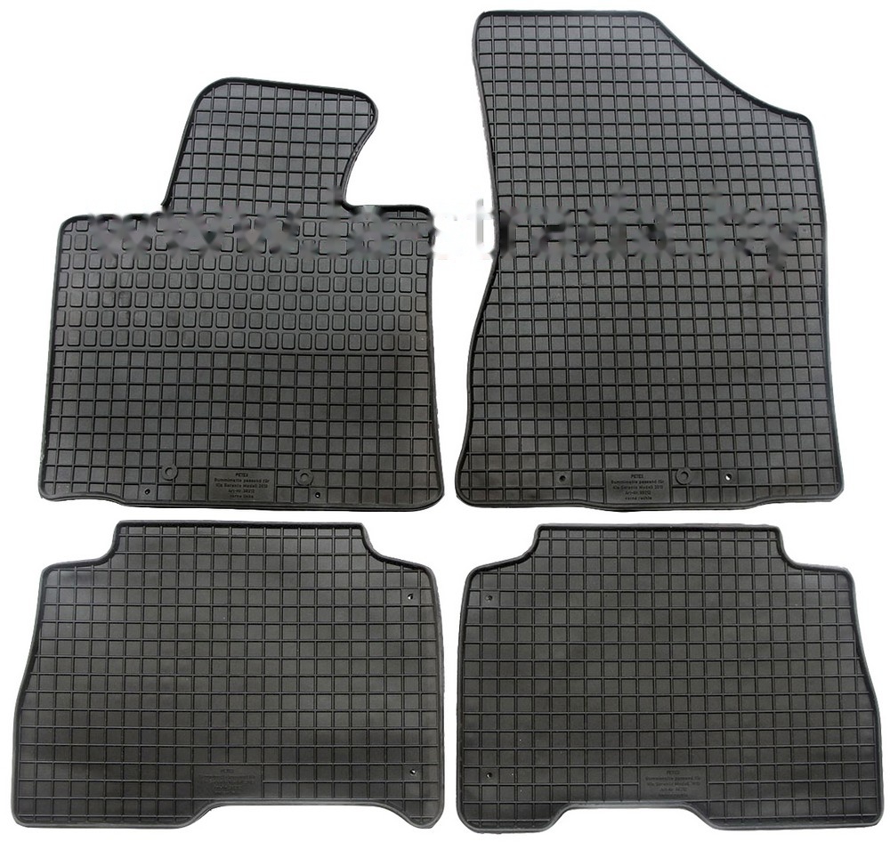 Купить резиновые автоковрики на Киа высокого качества от всемирно известных брендов «Frogum» (полные комплекты из 4 шт) и «Stingray» (комплекты из 2 шт) вы можете на нашем сайте. Заказать автомобильные коврики в салон можно с доставкой или самовывозом. Коврики мягкие, идеально повторяют форму пола как оригинальные, не пахнут, влага равномерно занимает выдавленную сетку на поверхности изделия, не образуя лужи и не вытекая за края.
