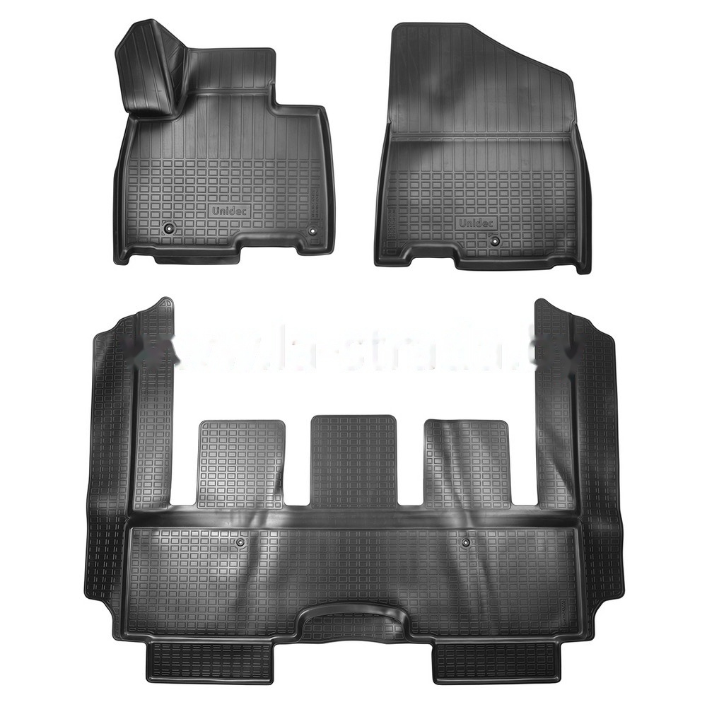 Купить резиновые автоковрики на Киа высокого качества от всемирно известных брендов «Frogum» (полные комплекты из 4 шт) и «Stingray» (комплекты из 2 шт) вы можете на нашем сайте. Заказать автомобильные коврики в салон можно с доставкой или самовывозом. Коврики мягкие, идеально повторяют форму пола как оригинальные, не пахнут, влага равномерно занимает выдавленную сетку на поверхности изделия, не образуя лужи и не вытекая за края.